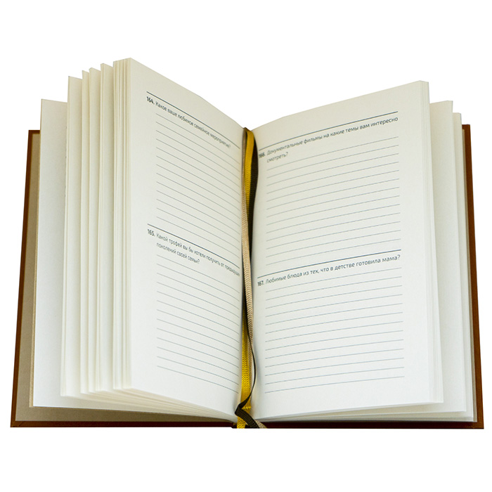 Ежедневник выполнен из самых лучших материалов: тканевый переплет, который приятно держать в руках, и бумага цвета слоновой кости, на которой приятно писать. Три разноцветные закладки-ляссе.