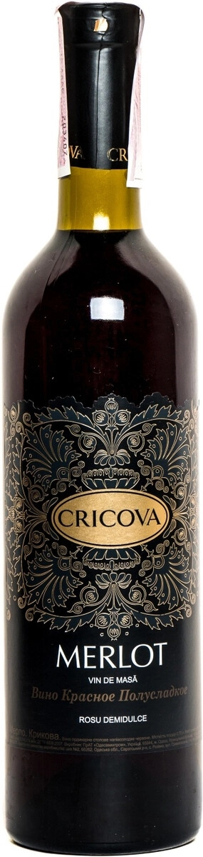 Вино Мерло полусладкое, Крикова, 0.75 л